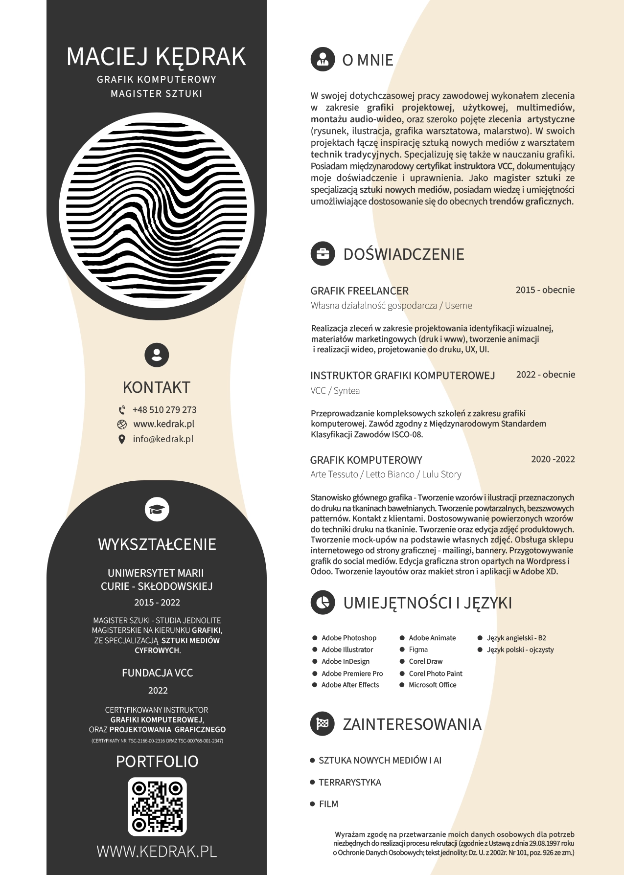 Studia jednolite magisterskie na kierunku grafiki, ze specjalizacją Sztuki Mediów Cyfrowych.